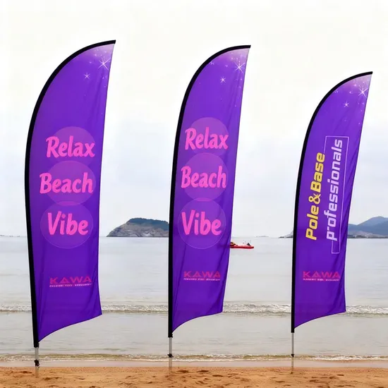 High Quality Custom Flying Teardrop Feather Beach Flags with Sturdy Bases