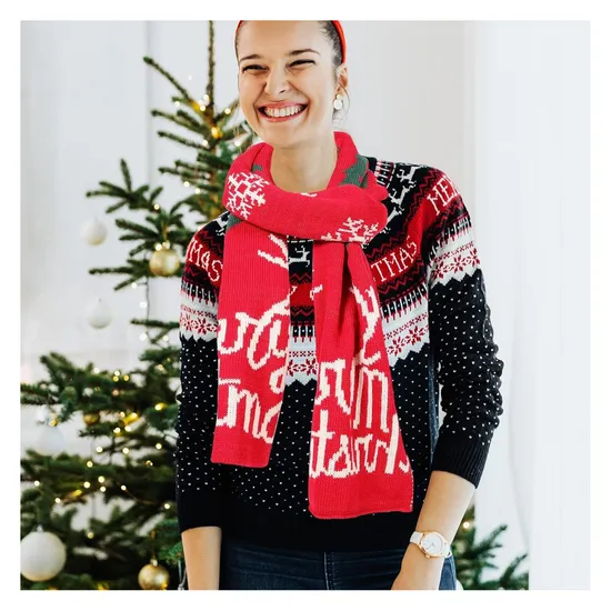 Jacquard Knitted Custom Worm High Quality Promotional Embroidered Souvenir Tassels Print Fans Scarf