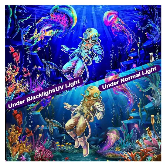 Personalized Fluorescent UV Active Mushroom Decor Custom Blacklight Tapestry